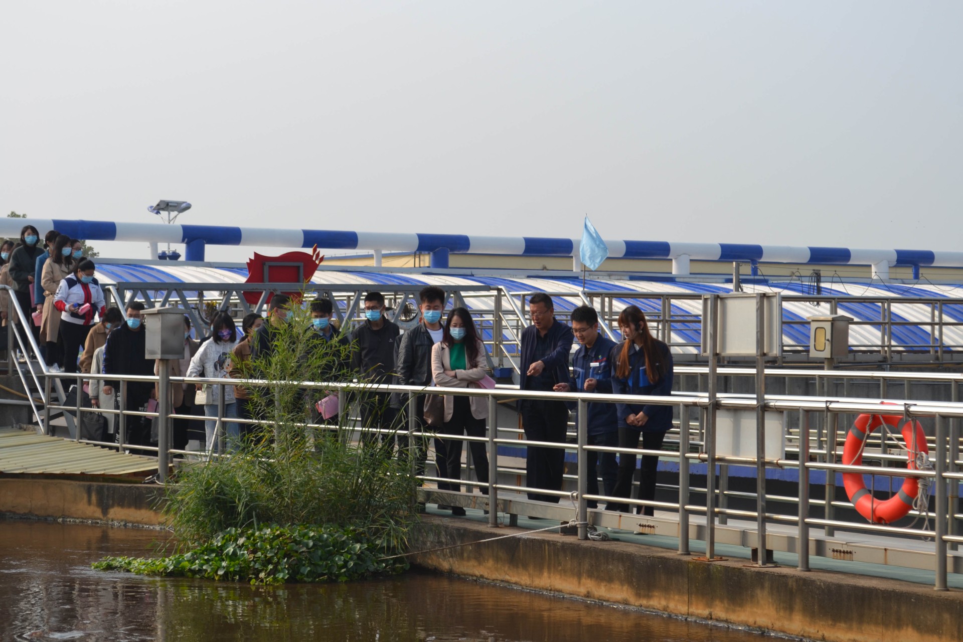 观摩学习过程中,按照工艺流程,从进水口、生化池、二沉池、纤维转盘滤池直至出水口,公司技术负责人对每工段设施设备操作及运行工艺作了详细讲解,并重点对生命科学体与工艺运行创新融合的理念及污水处理工作成功经验和做法进行了交流探讨。